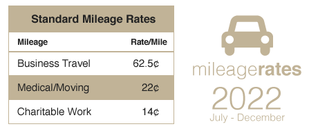 NEW Mileage rates for JULY through DECEMBER 2022