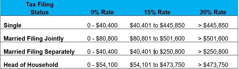 Long-term capital gains , on the other hand, are generally taxed no higher than 20% and could be taxed at 0%, depending on your income.